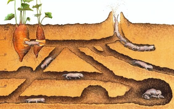 Факт знаходження цих підземних жителів підтверджує наявність різних горбків свіжовикопаної землі різної висоти (5-60 см). Кількість горбків не дорівнює кількості тварин, це тільки ілюстрація їх активності.