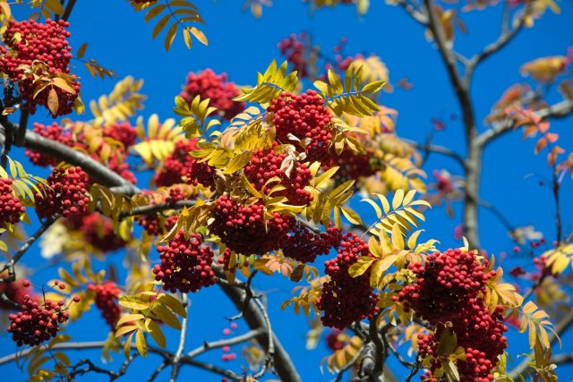 Горобина – ще одне дерево з тих, які відкривають свої фарби восени. Горобина змішана (Sorbus commixta "Embley") вважається одним з кращих видів. Вона виростає до 6 м у висоту.Природа наділила це дерево глянсовою червоним листям і жовтими ягодами.