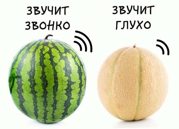 - По-друге, поплескайте овоч. звук повинен бути глухим (У кавуна, навпаки, дзвінким). Якщо він ви почуєте «водянисті» звуки, то овоч ще не готовий.
