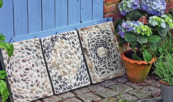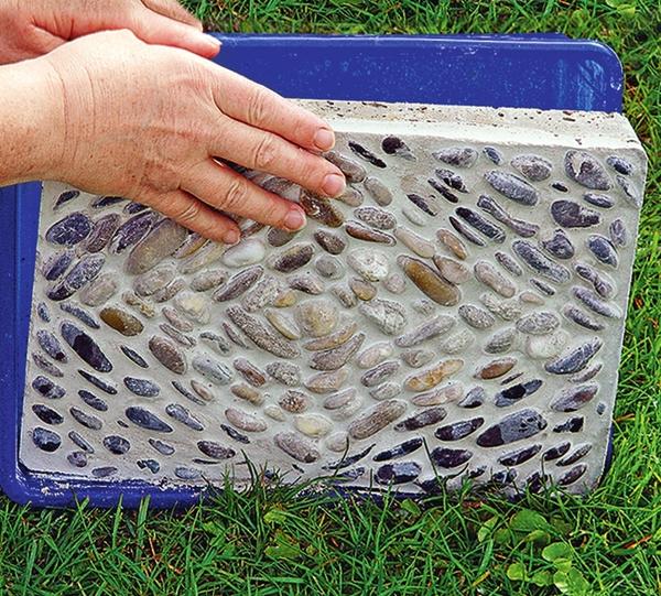 Для початку зробітьокремі крокові плити(Як на зображенні нижче). Формою для «випікання» таких гравійних «млинчиків» послужить великий піддон для горщиків.