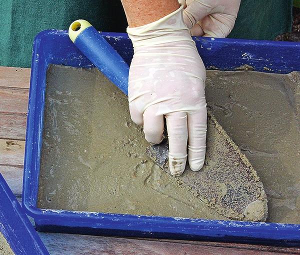 1. Для виготовлення крокових плитвам знадобиться цементний розчин. Піщано-цементну суміш розведіть водою і заповніть нею гнеться форму шаром завтовшки близько 5 см. Розрівняйте поверхню.