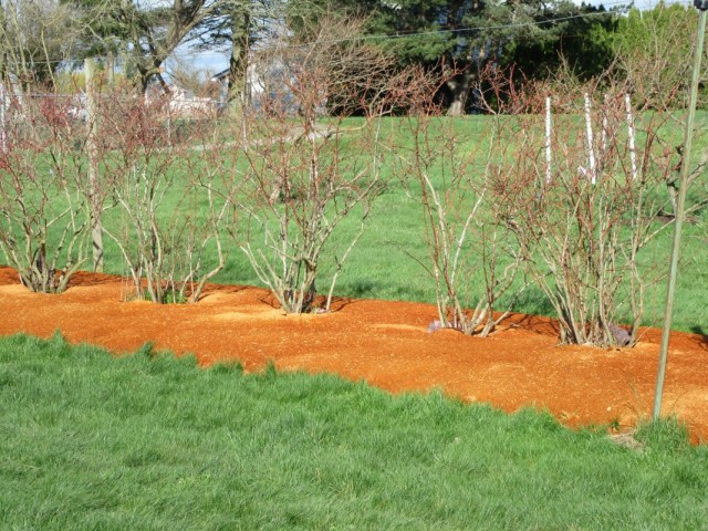 У міру усадки чисту мульчу додають в міжряддя і на доріжки. Шар необробленої мульчі в 6-8 см, постійно оновлюваний, запобігає ріст бур'янів.