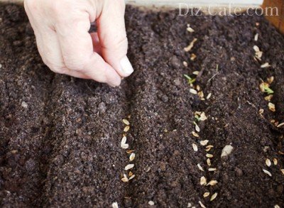 - Злегка ворушать грунт рукою або виделкою, щоб заглибити насіння.