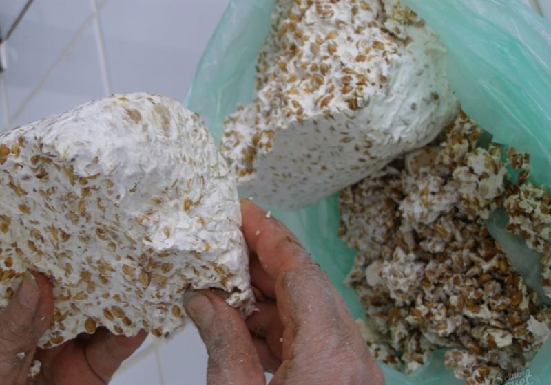 Отже, субстрат дійшов до необхідних параметрів і знаходиться в обраному приміщенні. Далі слід на місце майбутньої грибниці поселити міцелій гриба. Його в умовах стерильності здатні вирощувати тільки спеціалізовані лабораторії. Придбати товар можна в спеціалізованих садівничих магазинах.
