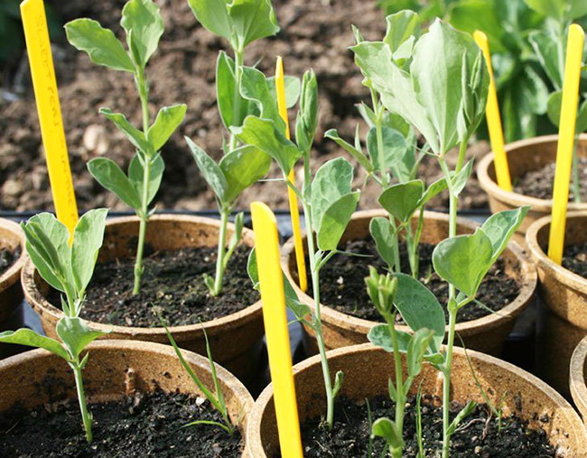- Помістіть розсаду запашного горошку в міні – теплицю або накрийте горщики з посівами поліетиленовими пакетами. При температурі +20 градусів сходи з'являться через 7 – 10 днів. Зніміть укриття і поставте розсаду в світле місце. Слідкуйте за тим, щоб втечі не перепліталися. Якщо розсада занадто витягнулася, а висаджувати в грунт її ще рано, прищипните верхівки пагонів.