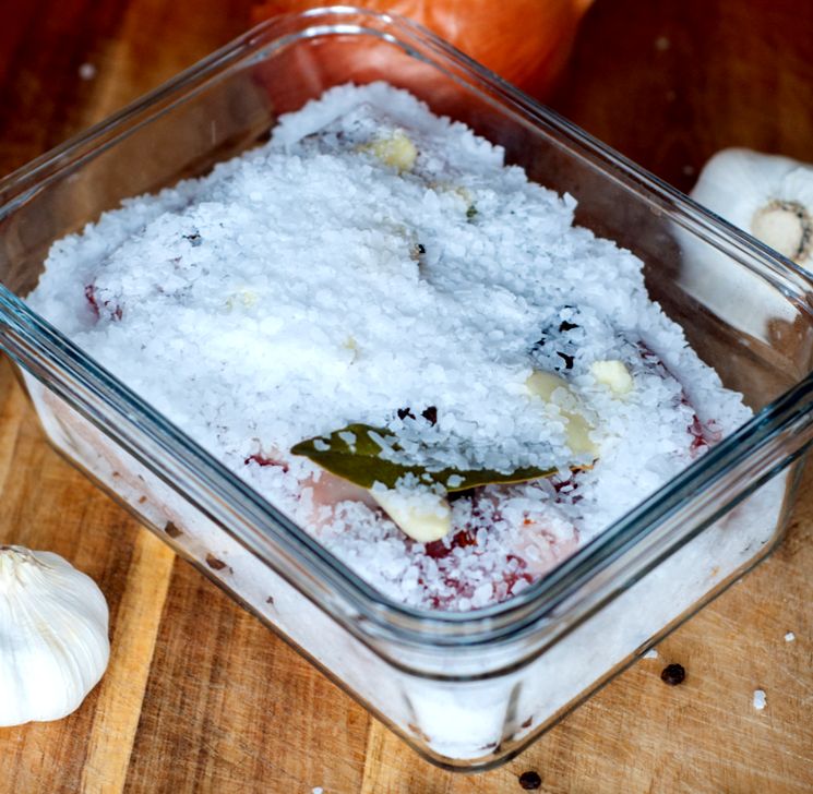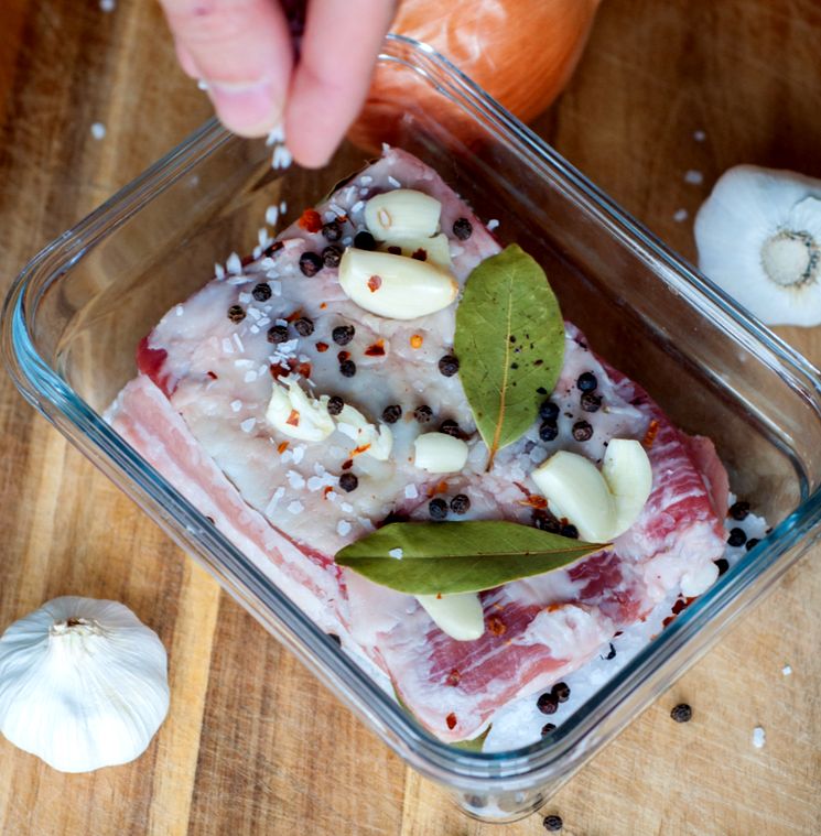 За цим рецептом дуже правильно солити сало з прошарками м'яса – найсмачніший спосіб.Вважається, що з морською сіллю тузлук більш насичений, а процес засолювання швидкий і бездоганний.