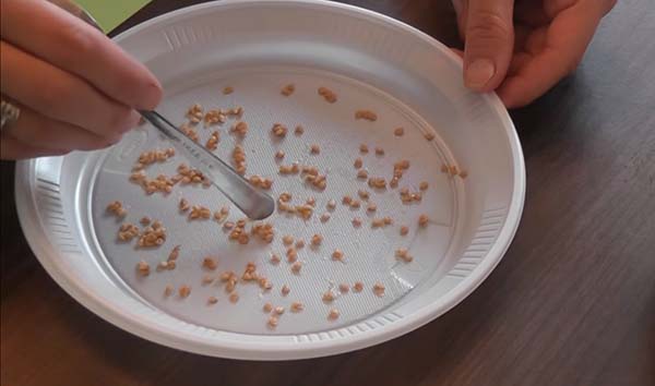 - Злийте більшу частину води разом з поганими насінням, а оставшуюся- процідіть через ситечко.