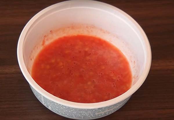 принципова відмінність методу зі зброджуванням в тому, що на 4-му етапі, після того, як ви дістанете м'якоть з насінням, заливати водою їх не потрібно. Тару слід накрити харчовою плівкою, в якій повинна бути парочка отворів (або негерметичной кришкою), і залишити на 1-2 дня при температурі + 22-25 градусів. Визначити, що процес ферментації закінчений, можна по появі бульбашок і пленочки на поверхні. Тепер насіннєвий матеріал потрібно відокремити від м'якоті, тобто ретельно промити під проточною водою, викинувши в ситечко. Далі технологія заготівлі повністю збігається.