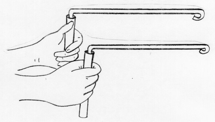 За допомогою мідного дроту водоносні жили шукають досить часто. Така біолокаційна рамка є Г-образно зігнутої дротом з довжиною сторін в 25 і 15 см. Для вільного обертання в руці, короткі кінці дроту потрібно вставити в дерев'яні трубки. При знаходженні над водоносним шаром розгорнуті на 180 градусів рамки змикаються, Що дозволяє не тільки визначити місце розташування підземних вод, але і їх межі.