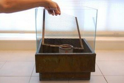 Робимо сітчастий настил: з металевої решітки за допомогою ножиць по металу вирізаємо прямокутник, розмір якого відповідає габаритам короба.