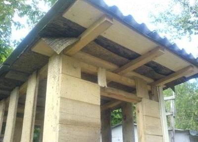 - Дах споруджують з листа шиферу, що укладається на поперечини, застелені руберойдом.