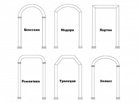 Головна відмінна риса кожної арки – форма зводу. Саме вона служить критерієм для класифікації виробів. Так, виділяють наступні типи арок: