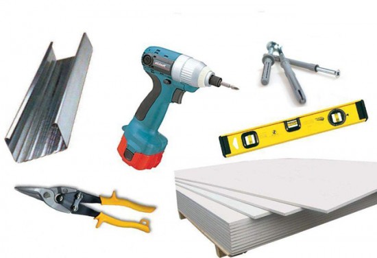 - листи гіпсокартону: два полотна товщиною по 12 мм і один для зводу – товщиною 6,5 мм;