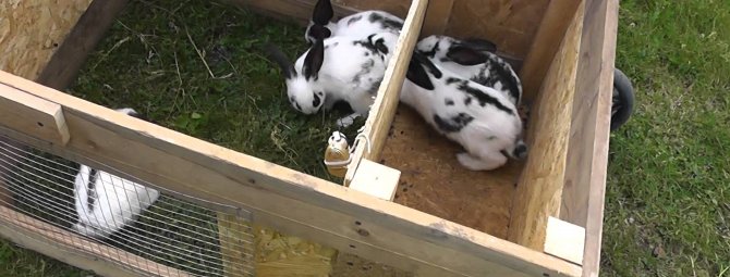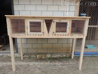 Невелика клітина з двох секцій прекрасно підійде для утримання пари кроликів: все необхідне для них в цій споруді є