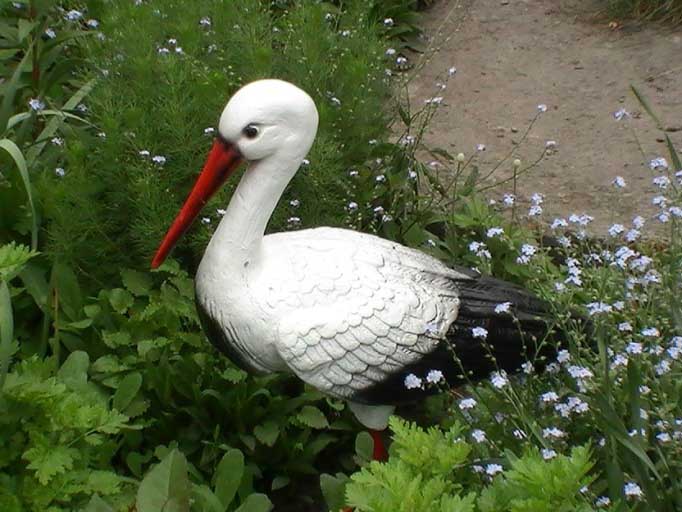 Звичайно, садовий лелека може бути цілком самодостатньою скульптурою. Але ж можна зробити все цікавіше, влаштувавши цілу композицію.