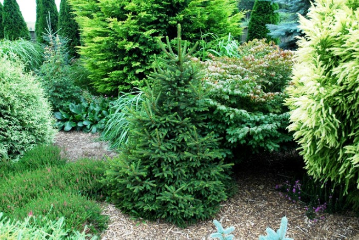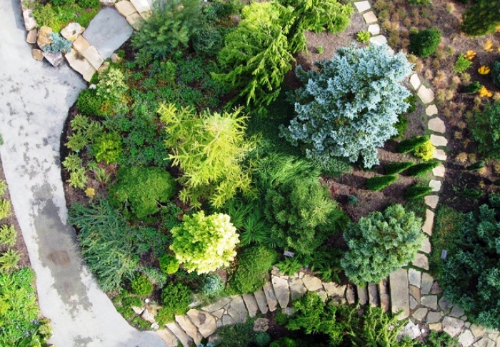 В принципі такий підхід має на увазі посадку різних рослин, але в невеликих кількостях. Тобто у вас повинен вийти «хвойний мікс». Головне – рослини повинні нормально уживатися один з одним і не конкурувати.