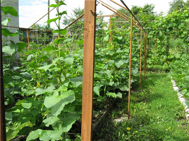 При вирощуванні у відкритому грунті або в теплиці такої овочевої культури, як огірки, можна зробити своїми руками конструкцію з натурального дерева.
