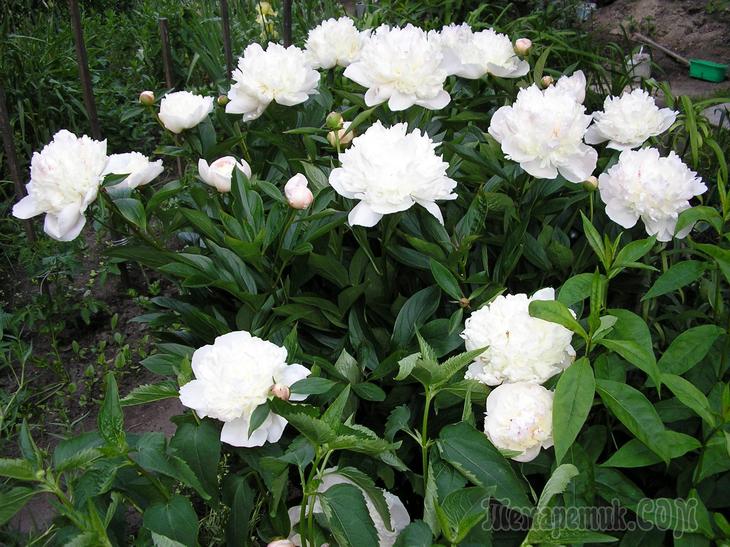 На початку вересня ділять і розсаджують кущі трав'янистих півоній. У рослини стебла обрізають на 1/3, за допомогою гострої лопати обкопують кущ, потім акуратно дістають його з землі, промивають струменем води. Після чого розрізають на деленки з 3-5 нирками і декількома здоровими корінням, викопують ями глибиною і діаметром близько 50 см і відправляють туди кущики півоній, присипавши грунтом так, щоб верхня брунька на кореневій шийці перебувала на 3-5 см нижче рівня грунту.