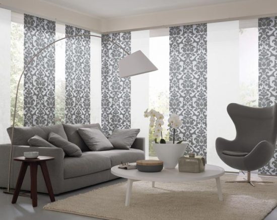 - Японські. Іноді їх називають панельними. Виглядають дуже лаконічно і стримано. Прекрасний варіант для кімнат, виконаних в мінімалістичному стилі. Гармонійно будуть дивитися в кімнаті з великими віконними прорізами, Крім того, можуть використовуватися в якості ширми-роздільник для зонування простору однієї кімнати.