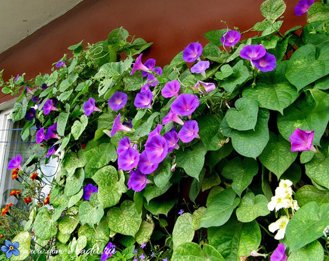 Іпомея, добре відчуває себе на балконі, лоджії, а також це відмінні в'юнкі рослини для забору.