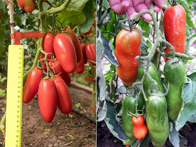 Витягнута форма і насичений колір плодів помідорів не може не привернути уваги. Крім незвичайної форми, даний сорт томата для теплиць закладаючись одна на одну безперервно спускаються від маківки вниз до самої землі. За рахунок товстої і щільною стінки, але не грубої шкірки вони володіють незвично ніжним і насиченим смаком. Мають чудову врожайністю. По праву можуть називатися найбільш урожайним сортом помідор для теплиці.