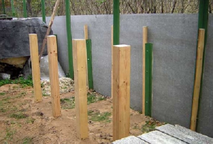 На фото 4 бруска прикріплені до опор забору, що дозволило спростити процес: не довелося копати 4 ями під стовпчики. Наступний етап – перегородки.
