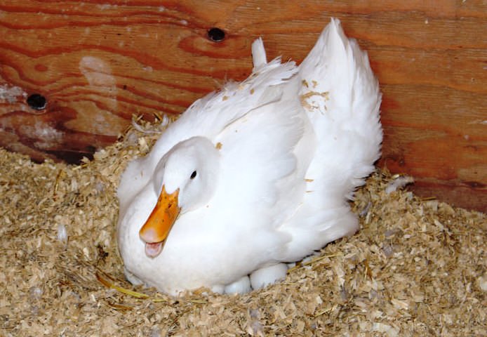 Квочка періодично сходити з гнізда, щоб поїсти або попити, тому годівницю і поїлку потрібно встановлювати на досить близькій відстані до гнізда. Дуже важливо поставити ємність з водою для купання. Мокре оперення дозволяє зволожувати поверхню яєць, що покращує виводимість. Каченята вилуплюються через місяць. Відсоток виводимості під квочкою найчастіше варіюється в межах 80-100%. При використанні інкубатора максимальна виводимість рідко перевищує 50-60%. Подальша життєстійкість домашньої птиці буде залежати від дотримання умов утримання та якості