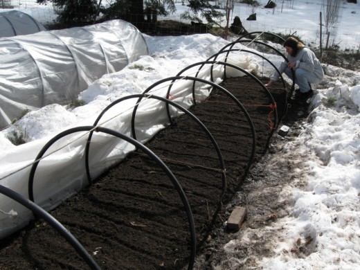Грядки з часником, морквою та іншими Підзимовий посів вже можна накрити чорною плівкою. Це прискорить схожість і забезпечить більш раннє дозрівання даних овочевих культур.