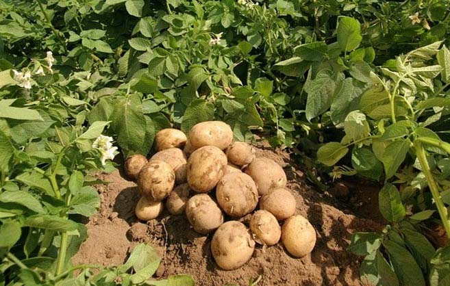 - догляд за картоплею у відкритому грунті передбачає проведення прикореневого підживлення, яких за весь період вегетації повинно бути не менше трьох;