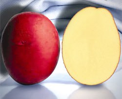Коренеплоди овальної форми, з наявністю дуже дрібних, які не псують товарний вигляд картоплі очок. Бульби покриті гладкою або трохи шорсткою шкіркою червоного кольору. М'якоть має світло-жовте, ближче до кремовому, фарбування. Середня вага одного товарного бульби може варіюватися від 80 до 156 м Середні показники крахмалистости м'якоті не перевищують 14,8%.