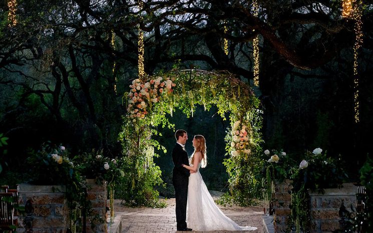 Весільна церемонія передбачає для нареченої ніжне летить плаття: наречена повинна нагадувати німфу, лісову фею, щоб гармонійно виглядати в просторі лісової краси. А ось волани, оборки і довгий шлейф будуть зайвими, Капелюшок або фата невеликої довжини, прикрашена стразами, дрібними квітами стане прекрасним доповненням. Також вдалим рішенням буде вінок з квітів, що вінчає зачіску нареченої. Букет нареченої, складений зі світлих непомітних кольорів, зелені, трав, доповнений декоративними елементами: метеликами, пташками, крапельками роси, буде виглядати свіжо і вишукано. Оформити весілля квітами і композиціями, скласти ідеальний букет для нареченої і бутоньєрку для нареченого вам допоможуть флористи. Справжні професіонали своєї справи, які поставляться до організації вашого свята як до свого власного, наповнять атмосферу ніжністю, а повітря – пахощами.