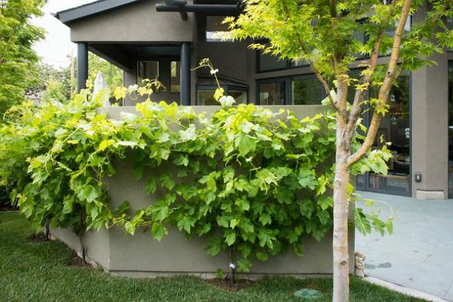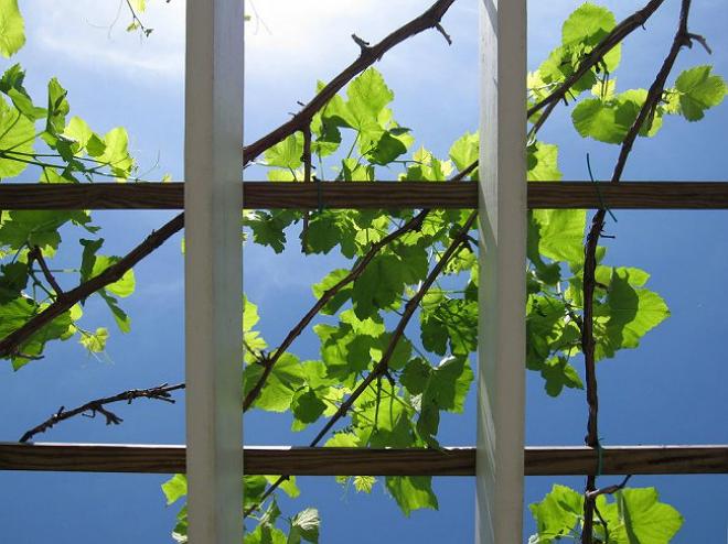 Стійкі шпалери для винограду на дачі виконують і декоративну функцію. Вони добре маскують непривабливі госпбудівлі і створюють привабливий, акуратний вигляд всьому саду.