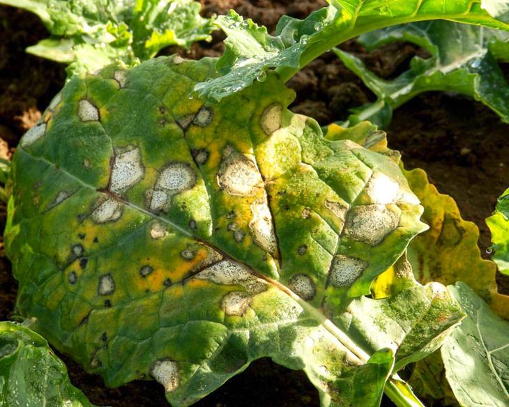 Суха гниль – білі плями на листі, які потім набувають більш темний відтінок.