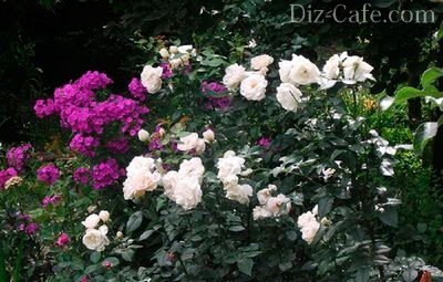 Рози зазвичай ростуть особняком, але є рослини, з якими вони добре поєднуються, наприклад, флокси. І час цвітіння у них приблизно однакова