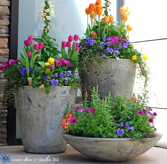 7. Миле оформлення клумби біля будинку. А такі горщики можна зробити своїми руками.