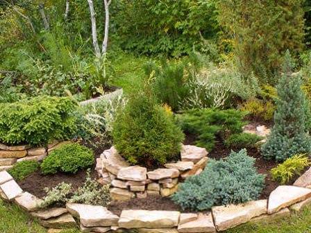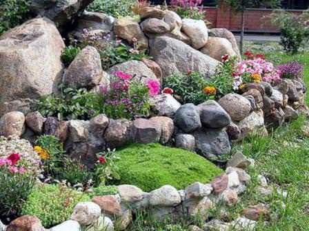 Клумби з каменю на дачі в сукупності створять кам'янистий сад, який може бути виконаний в певному стилі.Звичайно, стиль вибирається на основі власних уподобань, але важливу роль відіграють також такі фактори, як рельєф місцевості, рівень грунтових вод і деякі інші.