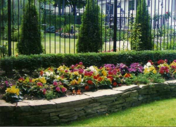 Популярним вважається звичайний бордюр з каменю для квітника. Він досить просто влаштовується, і зробити його можна дійсно за копійки. Цікаво те, що незважаючи на невисоку вартість споруди, бордюр може бути виконаний в дуже симпатичному стилі, і не тільки при цьому підкреслювати дизайн, але навіть формувати його.