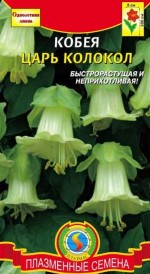 Матеріал для посадки слід купувати щороку і у різних виробників. фірма російський город, Наприклад, пропонує насіння кобеи Бузковий дзвін і Цар-дзвін. Перший сорт має великі фіолетові квіти, період цвітіння з липня по вересень. Другий – більш пізнє цвітіння, з липня до заморозків, і ніжні білі квіти трохи меншого розміру.
