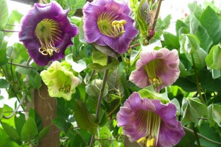 і квіти трохи дрібніші – 8 см. Цікаво те, що в процесі росту кожна квітка змінює свій колір від насиченого фіолетового до майже рожевого і від зеленуватого до ніжного білого, тому кожен день кобея змінюється й виглядає більш по-новому.