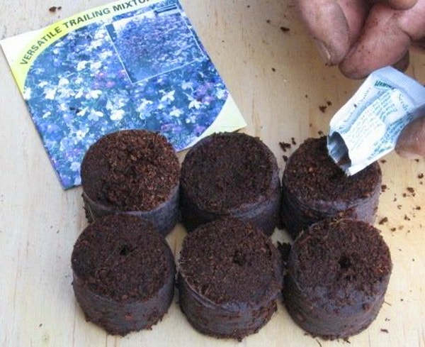 - коли таблетки набухнуть, зверху потрібно зробити невелике заглиблення, помістити в нього насіння і прикрити їх субстратом (а якщо під рукою є компост, то їм);