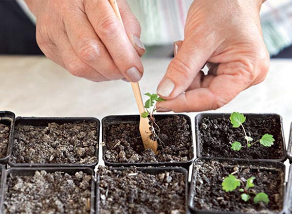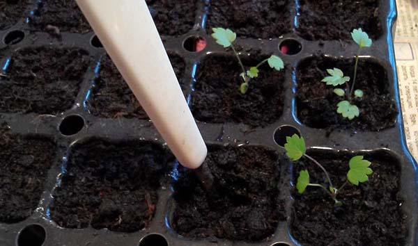- Пікіровка розсади полуниці, вирощеної з насіння