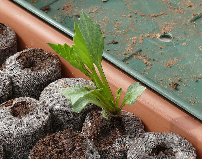 Починають пророщувати жоржини в квітні, коли дні стають більш-менш теплими (Середня температура близько 8-12 ° С). Найпростіший спосіб – викопати невелику траншею (глибиною – в багнет лопати), і туди висадити жоржини без будь-якої попередньої обробки. Щільність – висока. Зверху все це засипається розпушеному землею, мульчею (звичайне сіно або деревна тирса) і закривається плівкою. Перші паростки бульби жоржин пускають приблизно через 2 тижні. До цього періоду потрібно ретельно стежити за тим, щоб на паростки не потрапляють надмірної кількості сонця – може обпалити. При необхідності їх накривають НЕ плівкою, а агроволокном, що за своєю структурою схоже з плетеними павутиною. Полив не потрібен. Як правило, весняної вологи в грунті більш ніж достатньо.