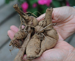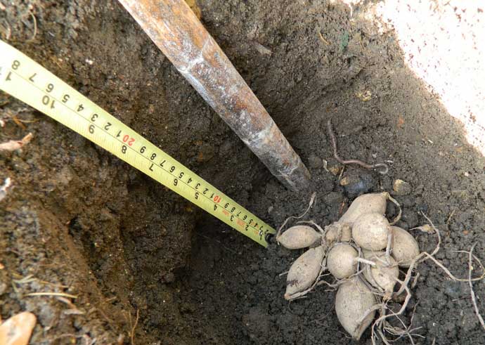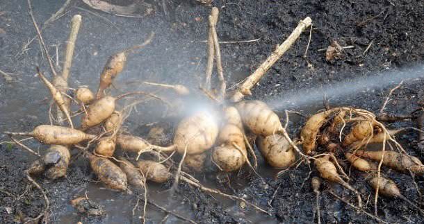 Далі коріння і бульби повністю викопуються (слід це робити з максимальною обережністю), омиваються водою, поділяються ножем на маленькі бульби. Вони, за фактом, вже готові під посадку. Висаджувати рекомендується в кінці квітня – початку травня. При цьому потрібно стежити за середньою температурою вночі. Від легких заморозків жоржини не помруть, але якщо температура впаде до показника в -3 ° С, то зів'януть навіть бульби. Цього слід побоюватися.
