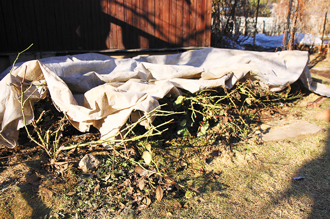 Знімати укриття з троянд потрібно акуратно і поетапно. Що вийшли зеленими після зими троянди за 2 – 3 дні можуть почорніти і загинути. Після зняття вкривають матеріалів обов'язково притените троянди ялиновим гіллям, інакше неминучі опіки стебел, які звикли до вологої повітряної середовищі.