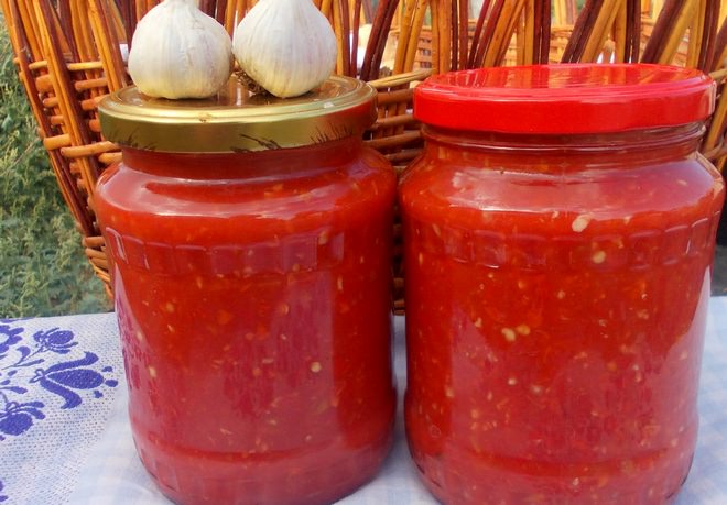 - Поки соус ще гарячий, розлити його по невеликих, краще півлітрова банка і закрити пластмасовими кришками. Дати аджике повністю охолонути, а потім прибрати для зберігання в холодильник.