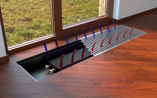 В середині підлоги водяні конвектори відрізняються цілим спектром переваг: