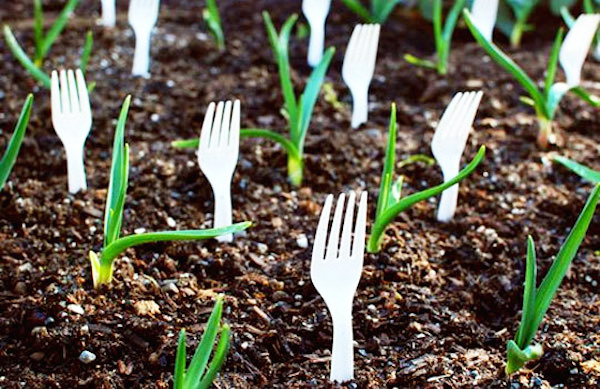 9. Увіткнені таким чином пластикові вилки вбережуть город від тварин.