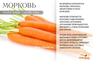 Морква є джерелом для надходження в організм вітаміну А (бета-каротину) – жиророзчинного речовини, яке бере участь в процесі зору.