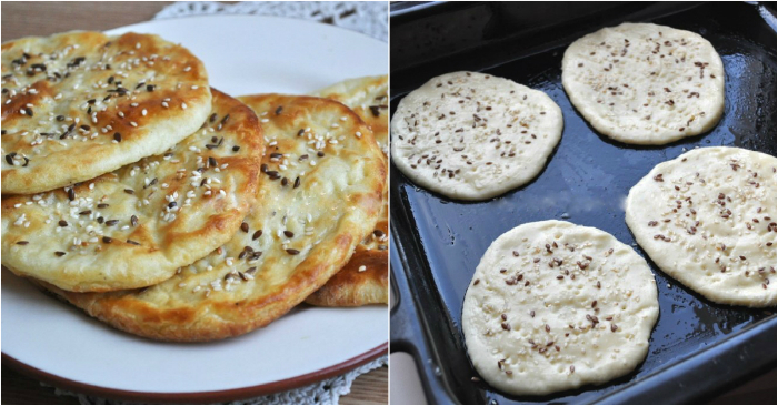 - Постеліть на деко папір для випічки, змастіть поверхню олією, покладіть на деко коржі з картоплі. Злегка проколіть смачні коржі виделкою, щоб вони не роздувалися. Намажте олією, посипте кунжутом або іншими спеціями, якщо хочеться. Випікайте коржі в духовці при температурі 200 градусів до зарум'янювання.