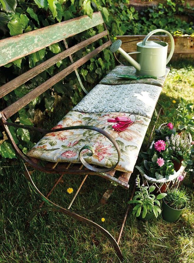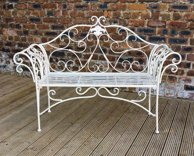 Ковані лавка і м'який плед – дачний затишок в стилі прованс